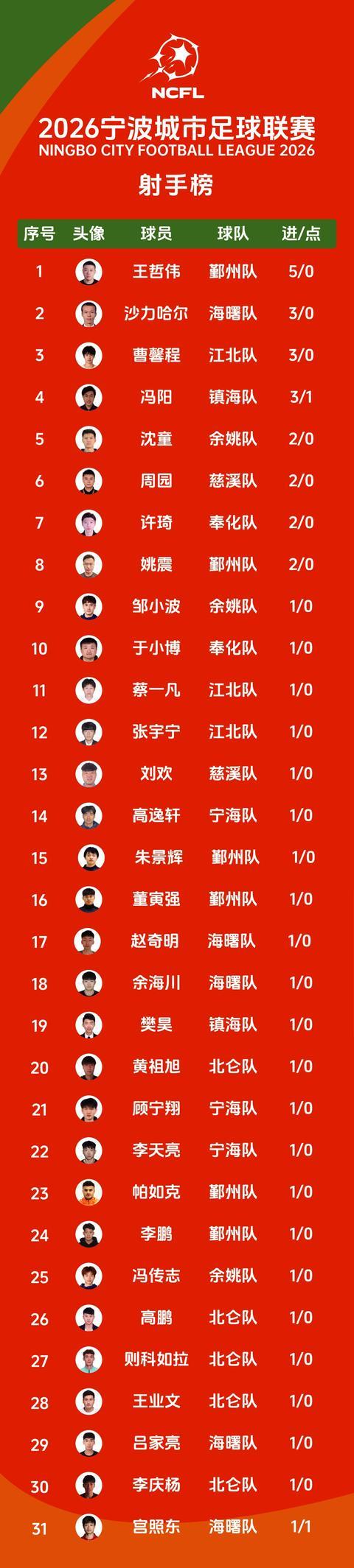 1月25日下午,2026宁波城市足球联赛完成第四轮B组的两场争夺:江北队主场3比2战胜余姚队后,以两胜两平的战绩率先从B组出线;慈溪队2比1战胜宁海队,慈溪队最后一轮只要不输球即可出线。