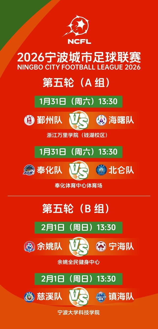 1月25日下午,2026宁波城市足球联赛完成第四轮B组的两场争夺:江北队主场3比2战胜余姚队后,以两胜两平的战绩率先从B组出线;慈溪队2比1战胜宁海队,慈溪队最后一轮只要不输球即可出线。